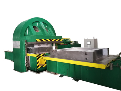該設(shè)備主要用于粉末制品的成型,如壓制四氟粉末等,聚乙烯板材,也可用于各類薄板成型。該機(jī)架體、主油缸均采用預(yù)應(yīng)力鋼絲纏繞結(jié)構(gòu),受力狀態(tài)合理,體積小,重量輕。本機(jī)電器的自動(dòng)化程度高、操作方便、維修簡(jiǎn)單。為了提高機(jī)器的抗偏載能力,保證機(jī)器的壓制精度,滑塊導(dǎo)向采用了鑲嵌斜面壓緊X型導(dǎo)軌導(dǎo)向;主油缸的密封采用國(guó)際先進(jìn)的防滲漏復(fù)合密封技術(shù)及金屬膨脹環(huán)密封技術(shù),極大地提高了主油缸密封的使用壽命;該機(jī)器液壓系統(tǒng)采用先進(jìn)的滑塊自重快速下行液壓技術(shù),提高了工作效率,節(jié)省能源,使得操作更加安全可靠;為了更換模具方便、減輕勞動(dòng)強(qiáng)度、機(jī)器配置了液壓移動(dòng)臺(tái)車裝置使更換模具、取送填料更加安全和方便快捷;電器控制采用PLC按鈕集中控制及人機(jī)界面觸摸式顯示操作程序系統(tǒng),電控箱設(shè)有集中控制面板,面板分別安裝工作狀態(tài)指示燈、顯示儀表、操作按鈕及選擇開關(guān),人機(jī)界面控制系統(tǒng)采用觸摸式工業(yè)顯示器,觸摸屏的畫面為中文菜單式,在屏幕上可以方便的對(duì)機(jī)器的參數(shù)進(jìn)行設(shè)定,也使得機(jī)器的故障率和機(jī)器的噪聲明顯的降低;為了保證機(jī)器在正常的條件下使用,機(jī)器分別設(shè)有壓力顯示、油溫報(bào)警、液位報(bào)警、緊急停止裝置及工業(yè)冷卻器功能;機(jī)器具有壓力穩(wěn)定、機(jī)械性能可靠、機(jī)器壓制精度高,是粉末制品壓制及各種薄板成型壓制成形較為理想的大型液壓機(jī)。